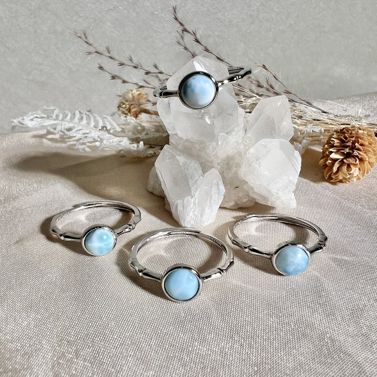 こんばんは! 天然石専門店Thida Stoneです(*^^*) 本日は、心を穏やかに整え、癒しをもたらしてくれる天然石、 ラリマーリング003 約6.9~7mmと、 アメジストリング 約6.8~7.1mmをご紹介いたします✨ どちらも“癒し”をテーマに、 日常の中でそっと心に寄り添ってくれる天然石です。 ラリマー一覧はこちら▶ アメジスト一覧はこちら▶ ❀ ラリマーリング003 約6.9~7mm ❀ 『心を解きほぐす、愛と平和の石』 海のようなやさしいブルーが印象的なラリマーは、 見ているだけで心が穏やかになるような癒しの天然石です。 感情の波をやさしく整え、 ストレスや不安を和らげながら、安心感へと導いてくれるといわれています。 人との関係を円滑にし、 素直な気持ちで向き合えるサポートをしてくれる存在です。 ・約6.9~7mm(ランダム|フリーサイズ) ❀ アメジストリング 約6.8~7.1mm ❀ 『心を整え、直感を高める癒しの石』 落ち着いた紫色が美しいアメジストは、 古くから癒しと守護の石として愛されてきた天然石です。 心の乱れをやさしく整え、 冷静な判断力や直感力を高めるサポートをしてくれるといわれています。 穏やかな気持ちを保ちながら、 自分らしい選択へと導いてくれる存在です。 ・約6.8~7.1mm(ランダム|フリーサイズ) ❀ それぞれの魅力 ❀ ラリマーは感情をやさしく癒し、 アメジストは心を整えながら内面をクリアにしてくれる石。 “癒し”と“安定”の両方をバランスよくサポートしてくれるため、 心を整えたいときにぴったりの組み合わせです。 直感で惹かれるその輝きが、 今のあなたに必要な癒しを届けてくれるかもしれません。 ❀ こんな方におすすめ ❀ ・ストレスや不安を和らげたい ・心を落ち着かせたい ・穏やかな人間関係を築きたい ・自分らしく過ごしたい やさしい癒しのエネルギーを取り入れて、心穏やかな毎日を過ごしてみてください✨