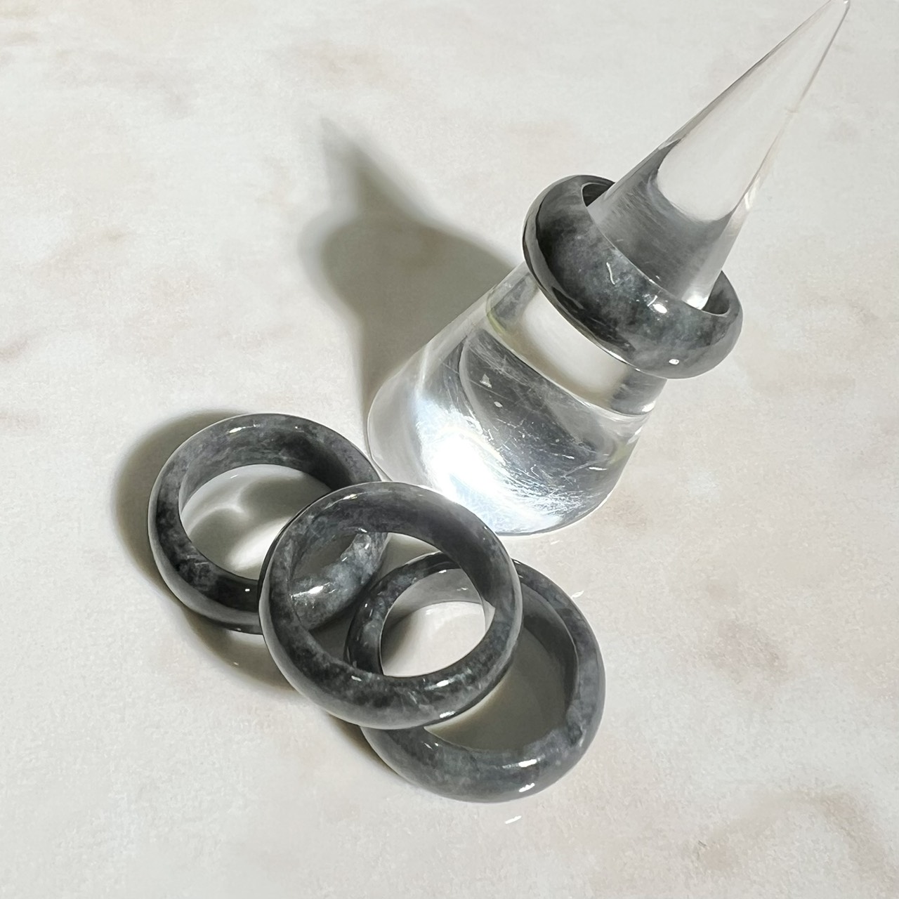 ブラック翡翠(ヒスイ)くり抜きリング 15号(ランダム)