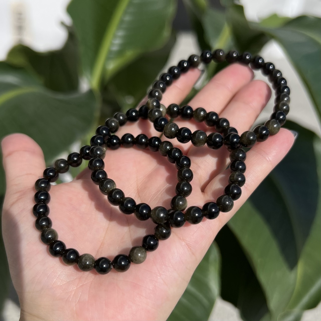 ゴールデンオブシディアンブレスレット 約6.3~6.6mm(ランダム|キズ有)