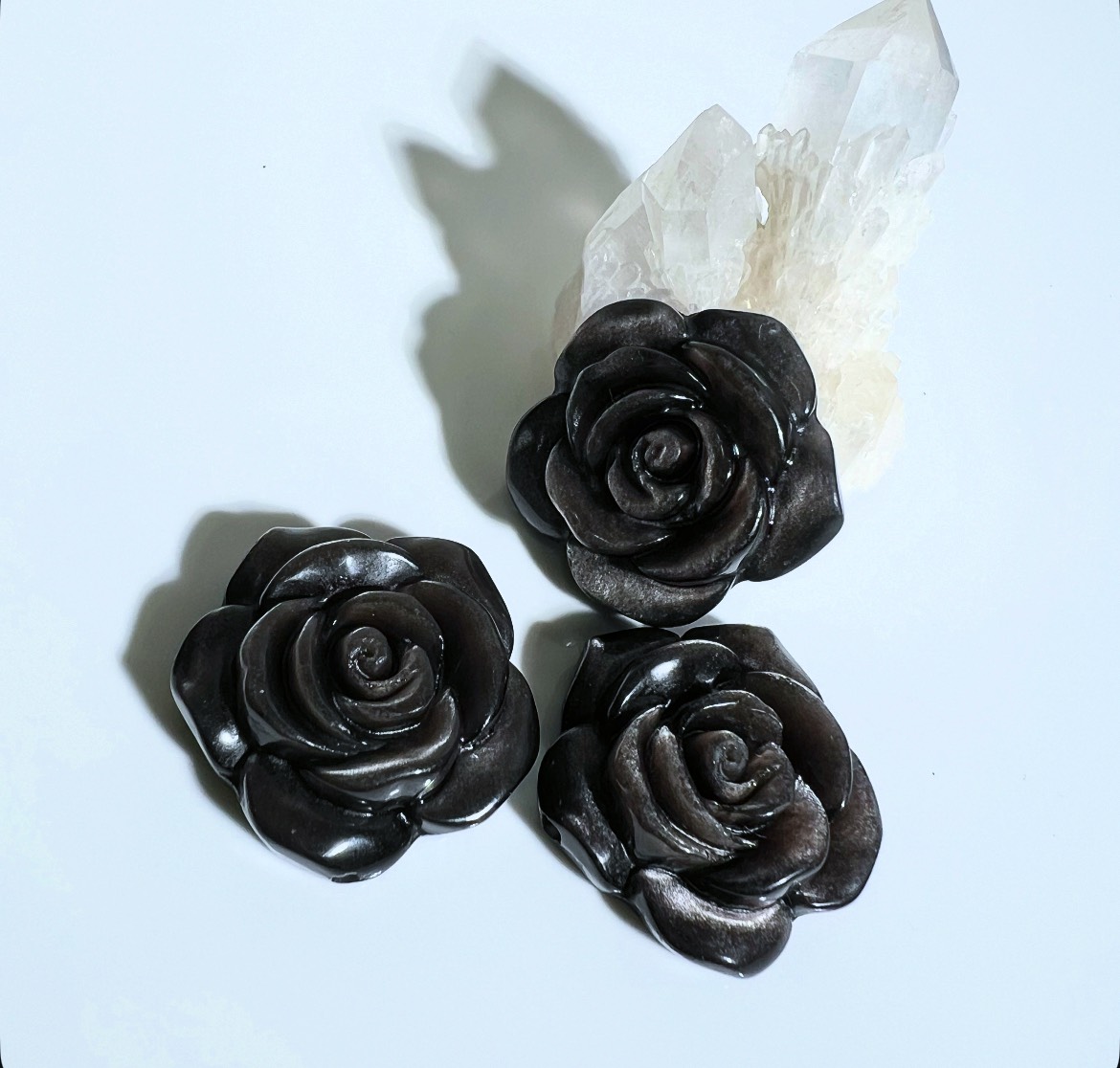 NEW オブシディアン バラ粒 約28.9mm 粒販売(ランダム)