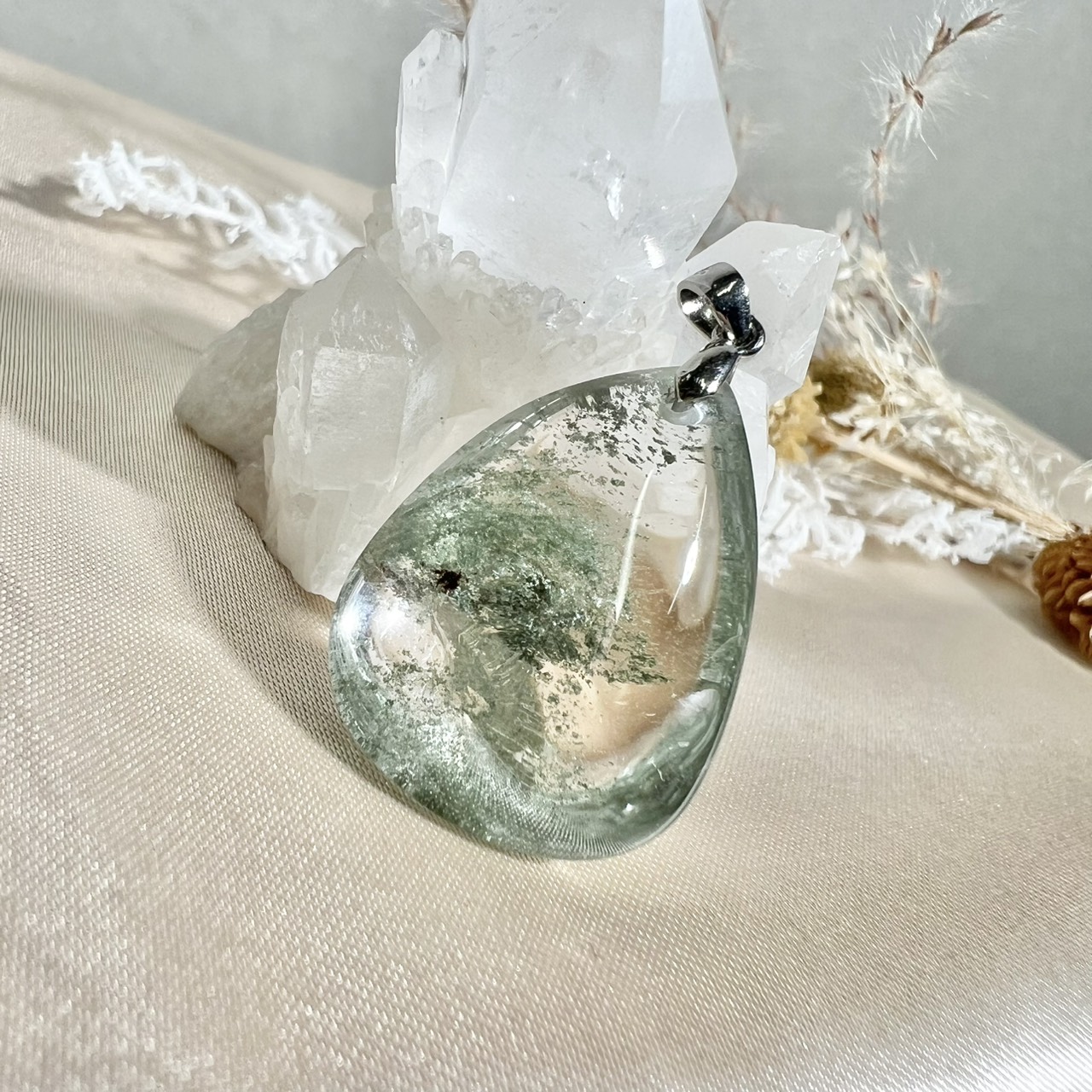 ガーデンクォーツは、水晶の中に苔や庭園のような内包物を含むことからその名がついた天然石。まるで小さな自然の世界が閉じ込められているかのような神秘的な見た目が特徴です。