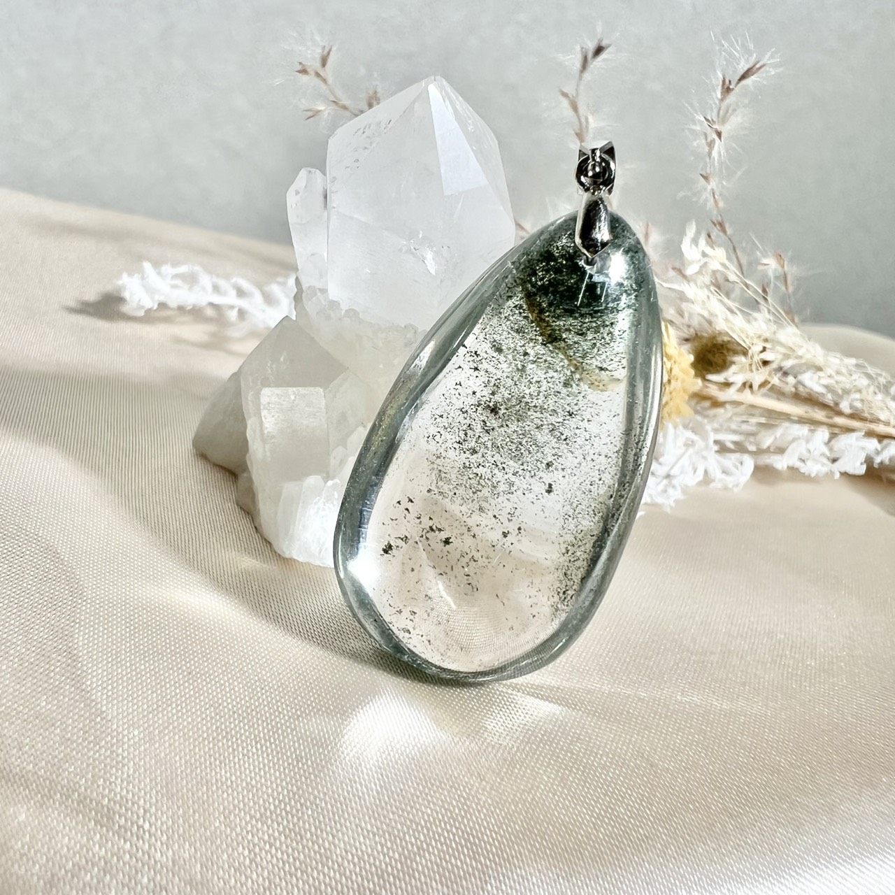 ガーデンクォーツは、水晶の中に苔や庭園のような内包物を含むことからその名がついた天然石。まるで小さな自然の世界が閉じ込められているかのような神秘的な見た目が特徴です。