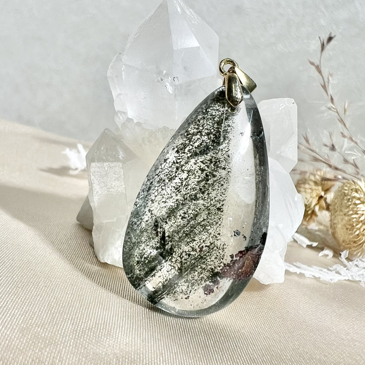 ガーデンクォーツは、水晶の中に苔や庭園のような内包物を含むことからその名がついた天然石。まるで小さな自然の世界が閉じ込められているかのような神秘的な見た目が特徴です。