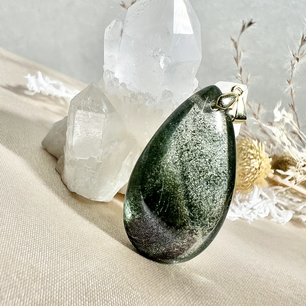 ガーデンクォーツは、水晶の中に苔や庭園のような内包物を含むことからその名がついた天然石。まるで小さな自然の世界が閉じ込められているかのような神秘的な見た目が特徴です。