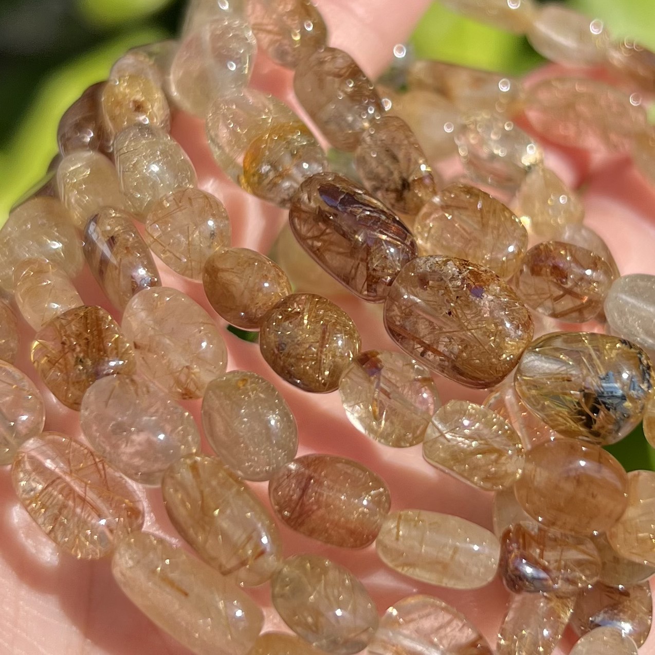 ルチルクォーツ タンブルカットブレスレット 約6~14mm(ランダム)