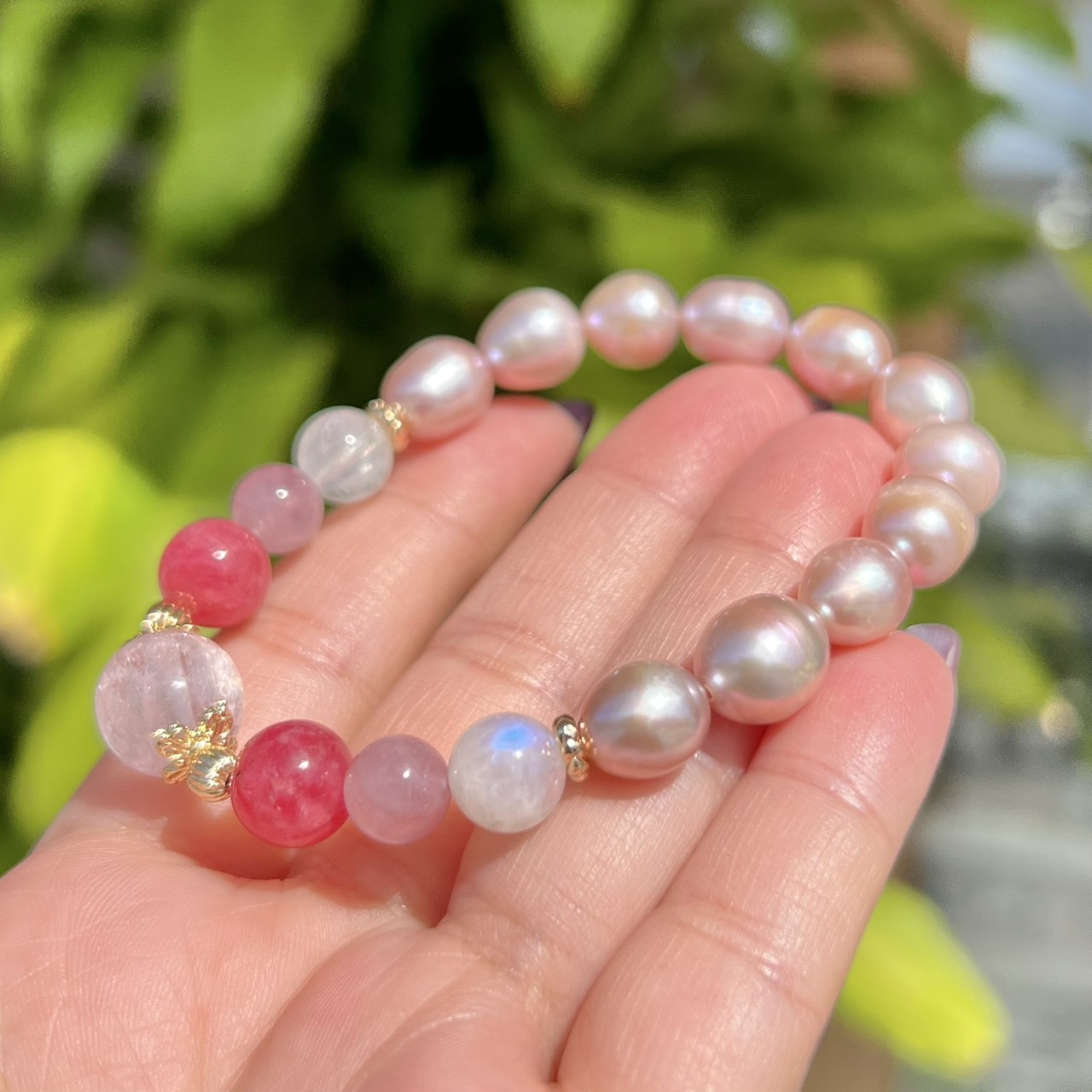 【1点物】【ポーチ付】クンツァイトデザインブレスレット 004