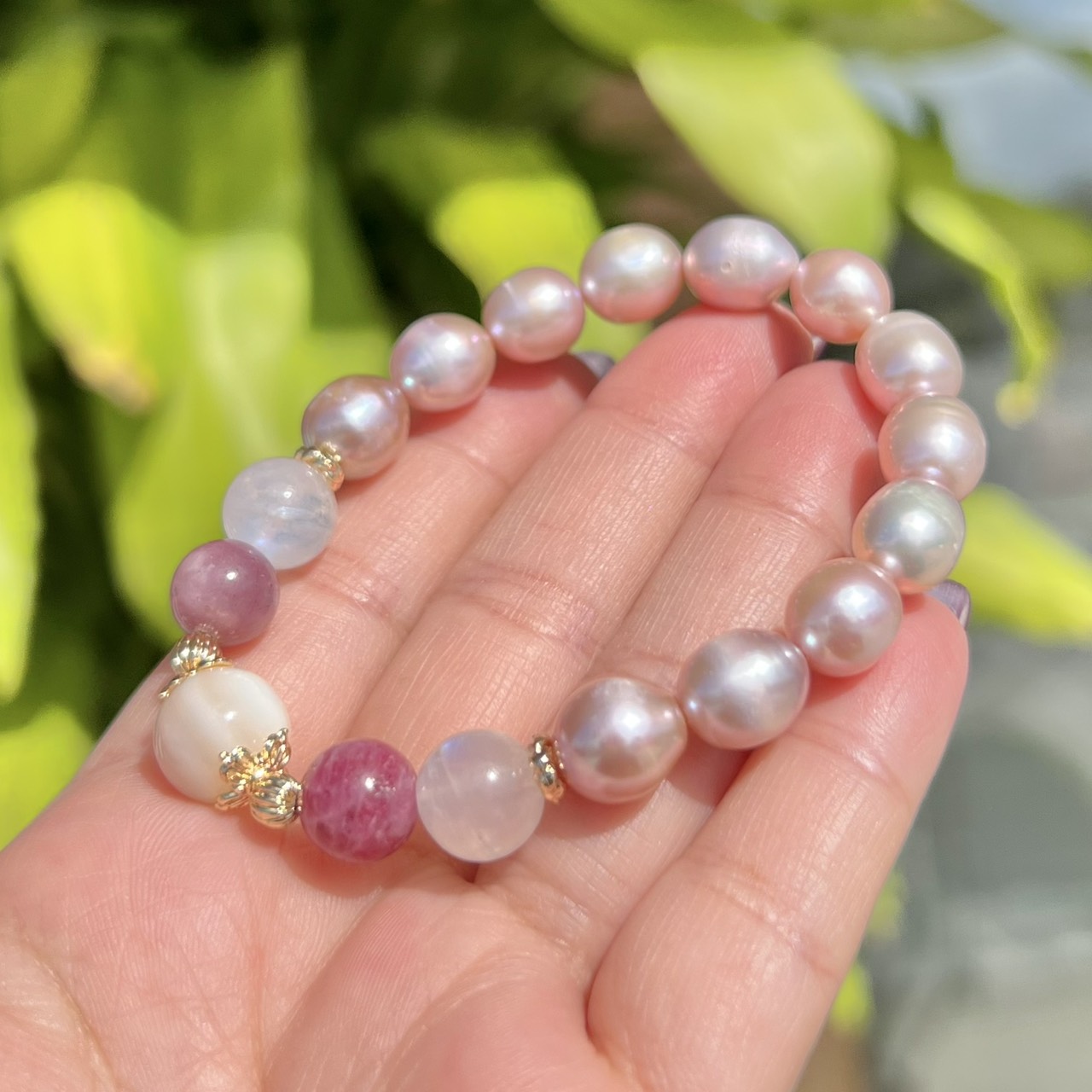 私にぴったりで嬉しいです。綺麗な梱包ですぐに送っていただきありがとうございました。意味もなく心身ともにヘトヘトで疲れ切った現状をなんとかしたく購入させていただきました。大好きなピンク色、小さめの石、サイズ変更なし・・・とまさに理想!私が探していたブレスレットでした。エピドートという石も始めて知りました。本当に嬉しいです。さりげなく身につけられるので毎日身につけています(^^)キラキラの水晶さざれ石もありがとうございました。