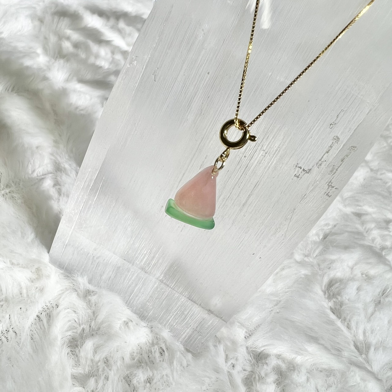 塩源瑪瑙(メノウ) スイカチャーム 約16mm(ランダム|真鍮)
