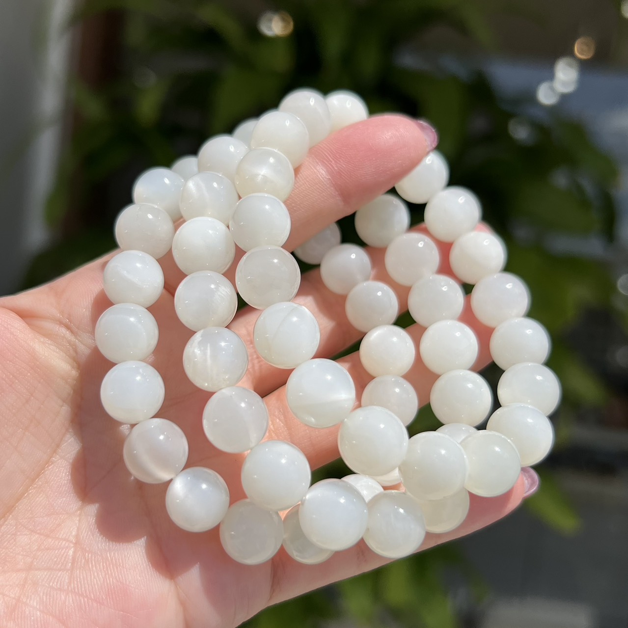 ホワイトムーンストーンブレスレット 約9.9~10.6mm(ランダム)