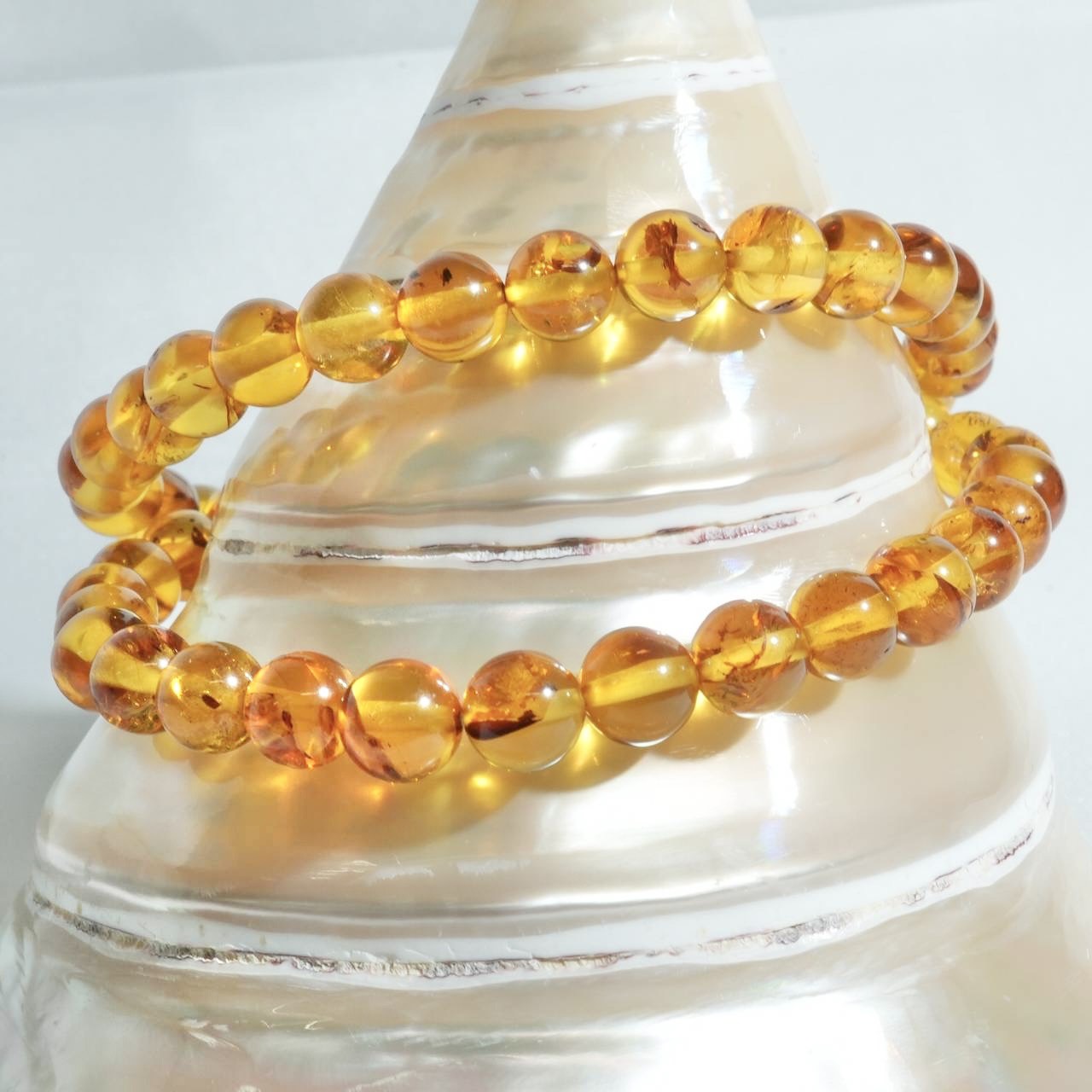 はるか昔の樹液が化石化して生まれたアンバー(琥珀)は、植物由来の温もりを感じさせる特別な存在です。手首に触れた瞬間、ふわりと心を解きほぐしてくれるような軽やかさと、深い黄金色の輝きは、見る人の心に希望の光を灯してくれます。