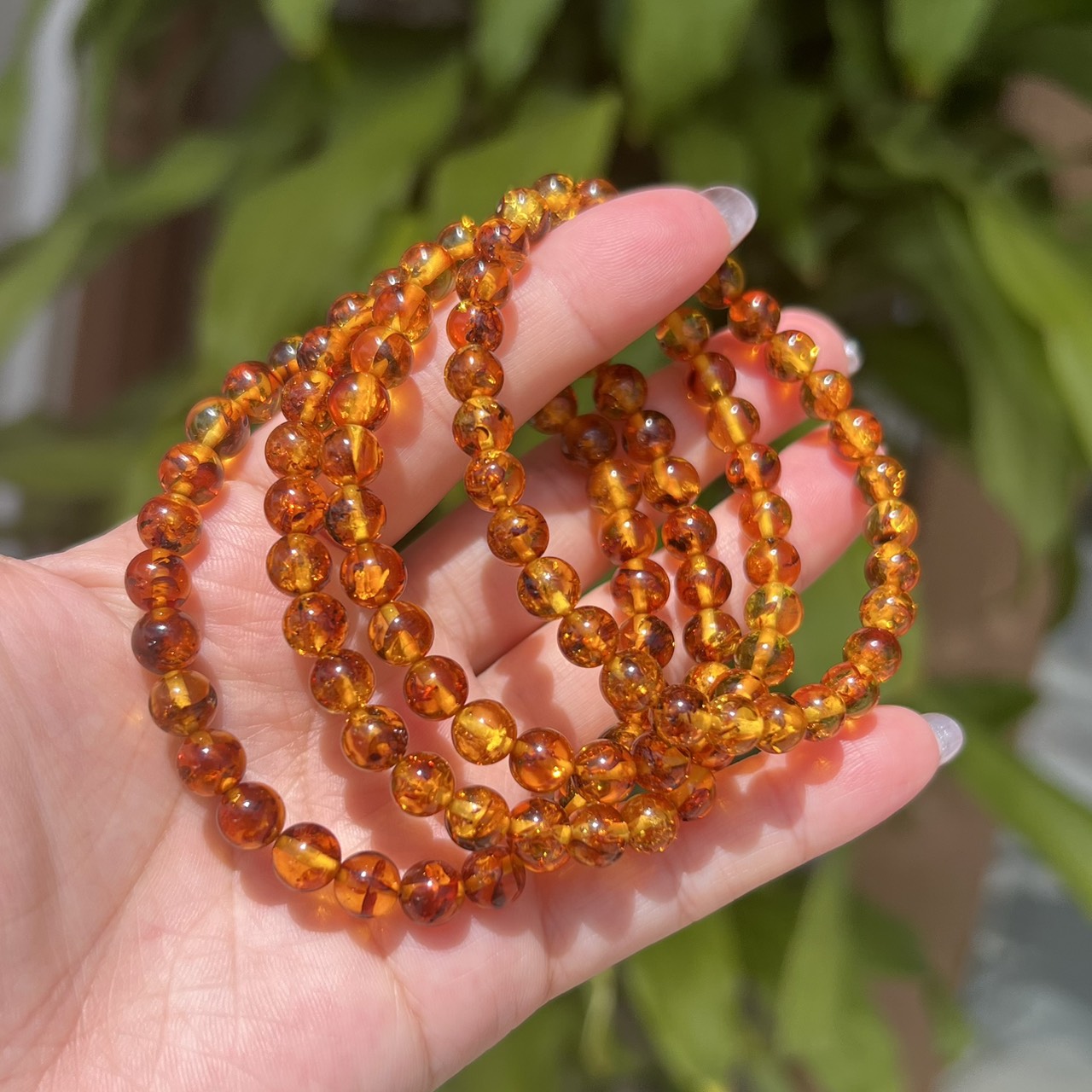 NEW アンバーブレスレット 約6mm(ランダム|天然キズ有)
