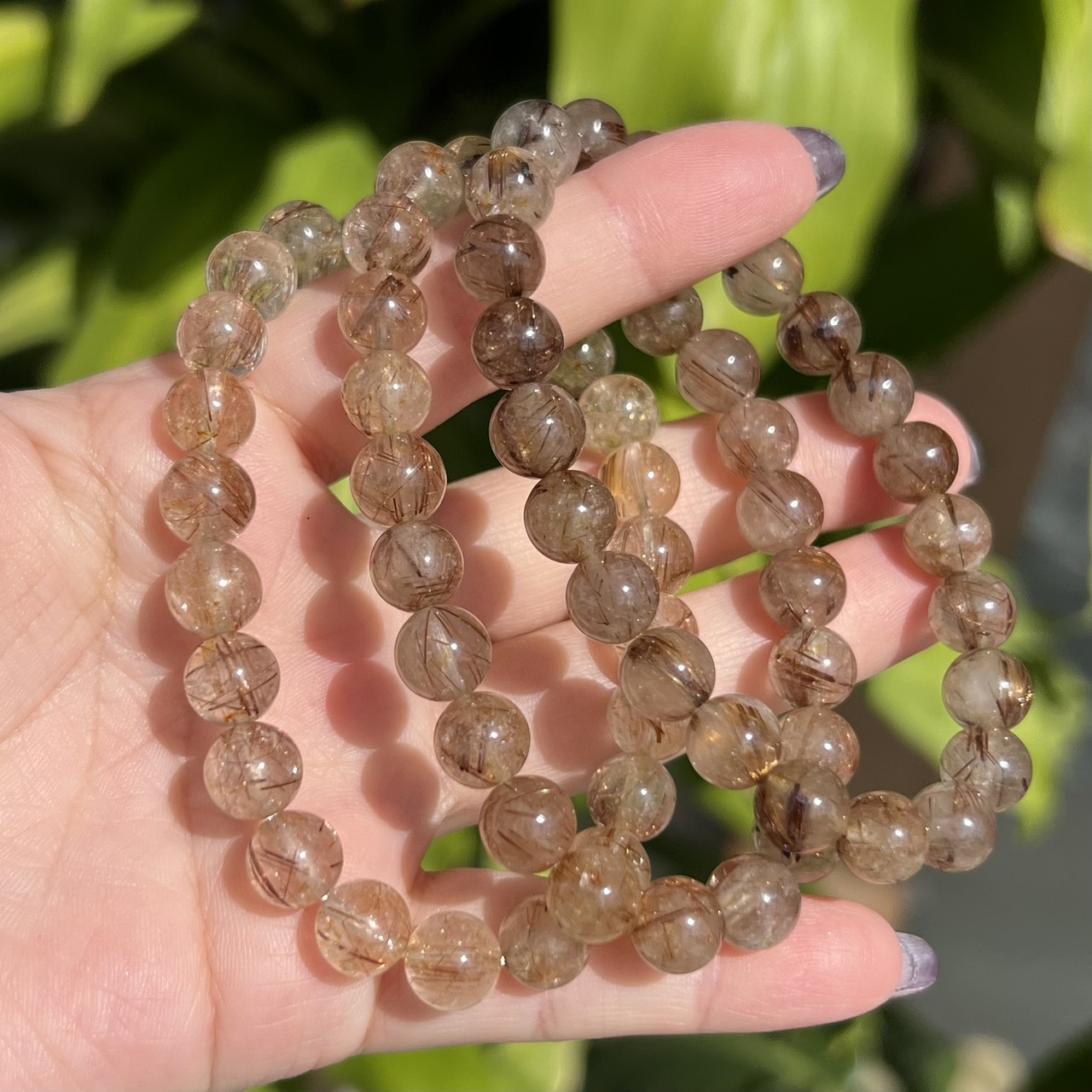 NEW ルチルクォーツ タンブルカットブレスレット 約6~14mm(ランダム)