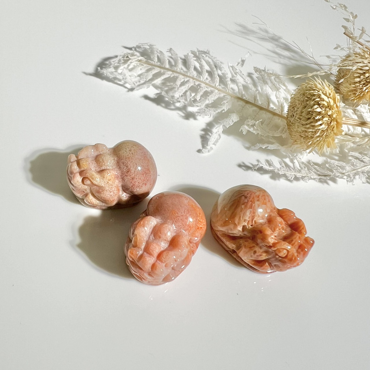 フォッシルコーラル 貔貅(ヒキュウ)約18.5~19.5mm 粒販売(ランダム)