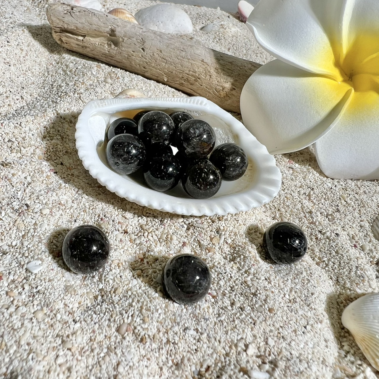 NEW ブラックルチルクォーツ 粒 約10.7~11.0mm 粒販売(ランダム)