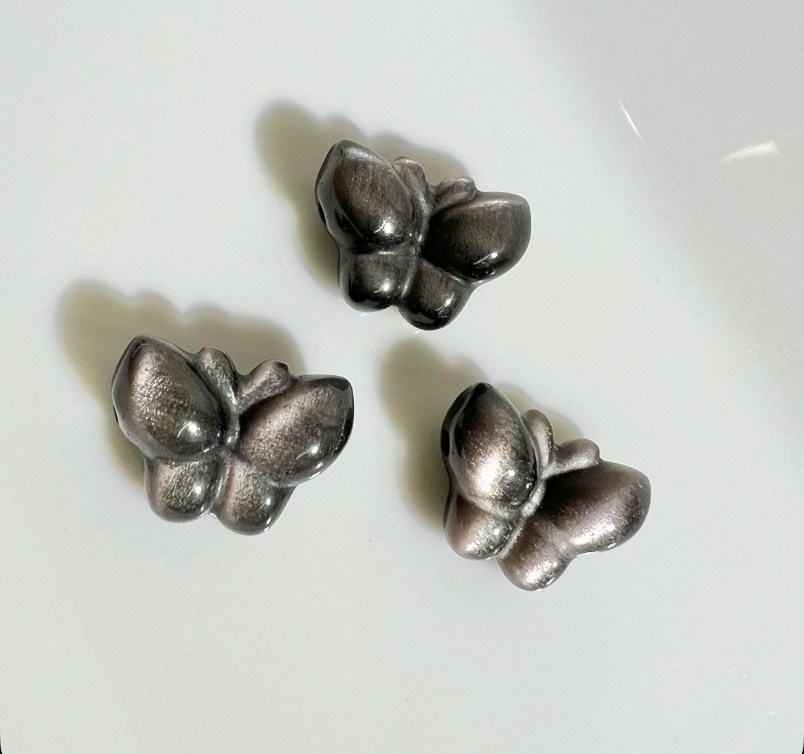 NEW シルバーオブシディアン ちょうちょ粒 約18.9mm 粒販売(ランダム)