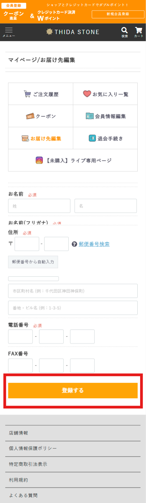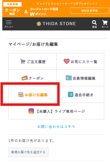 01:マイページにアクセスして「お届け先編集」ボタンをタップ