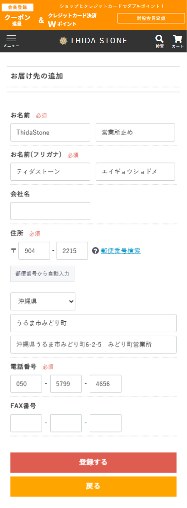 名前・住所・電話番号など必要な項目を入力し、保存してください。