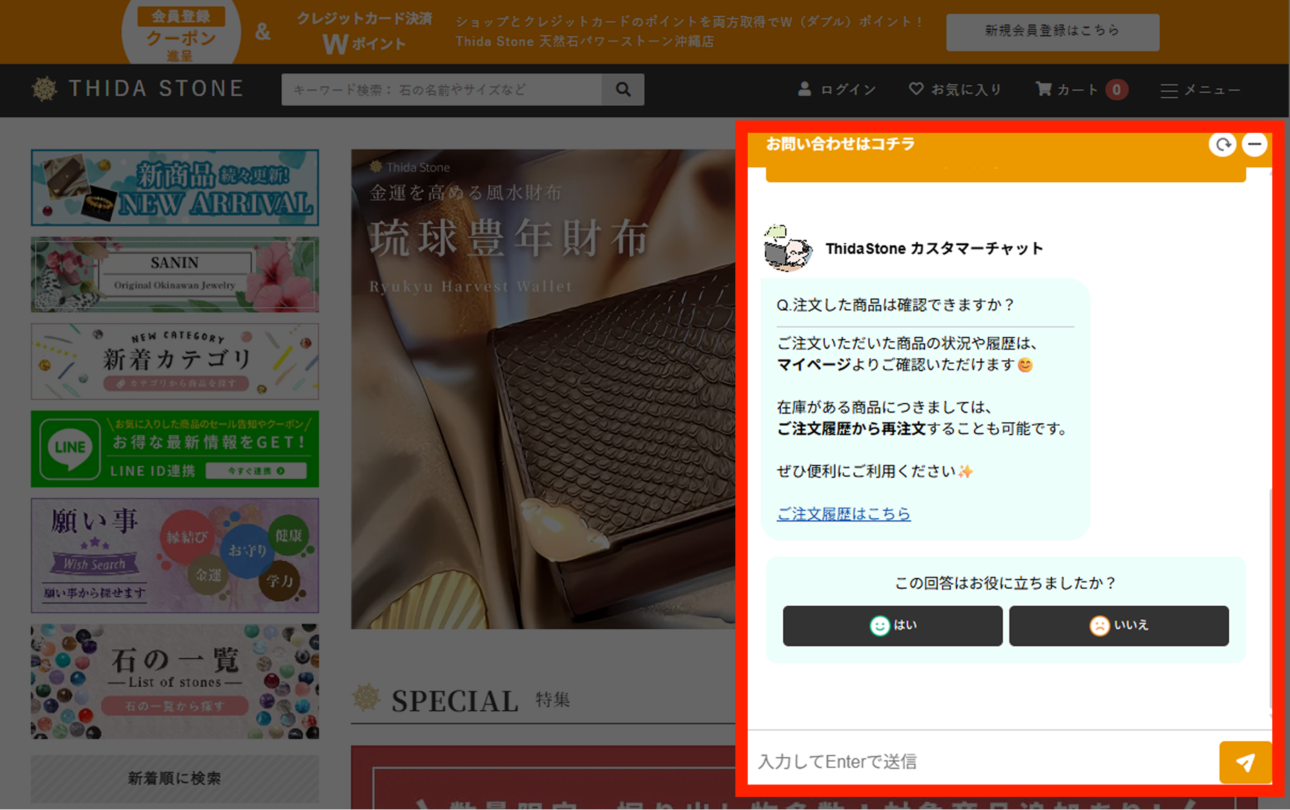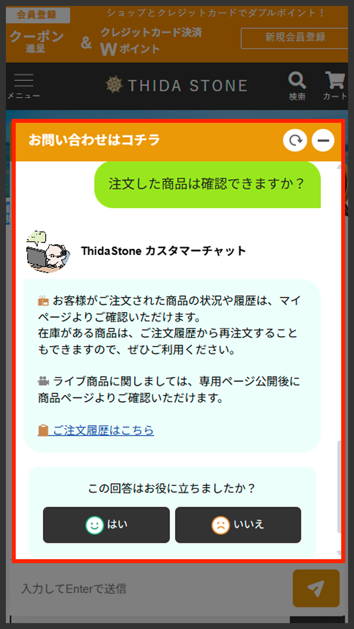 お困り事は、画面右下の「Thida Stone チャット」で解決できるかもしれません♫