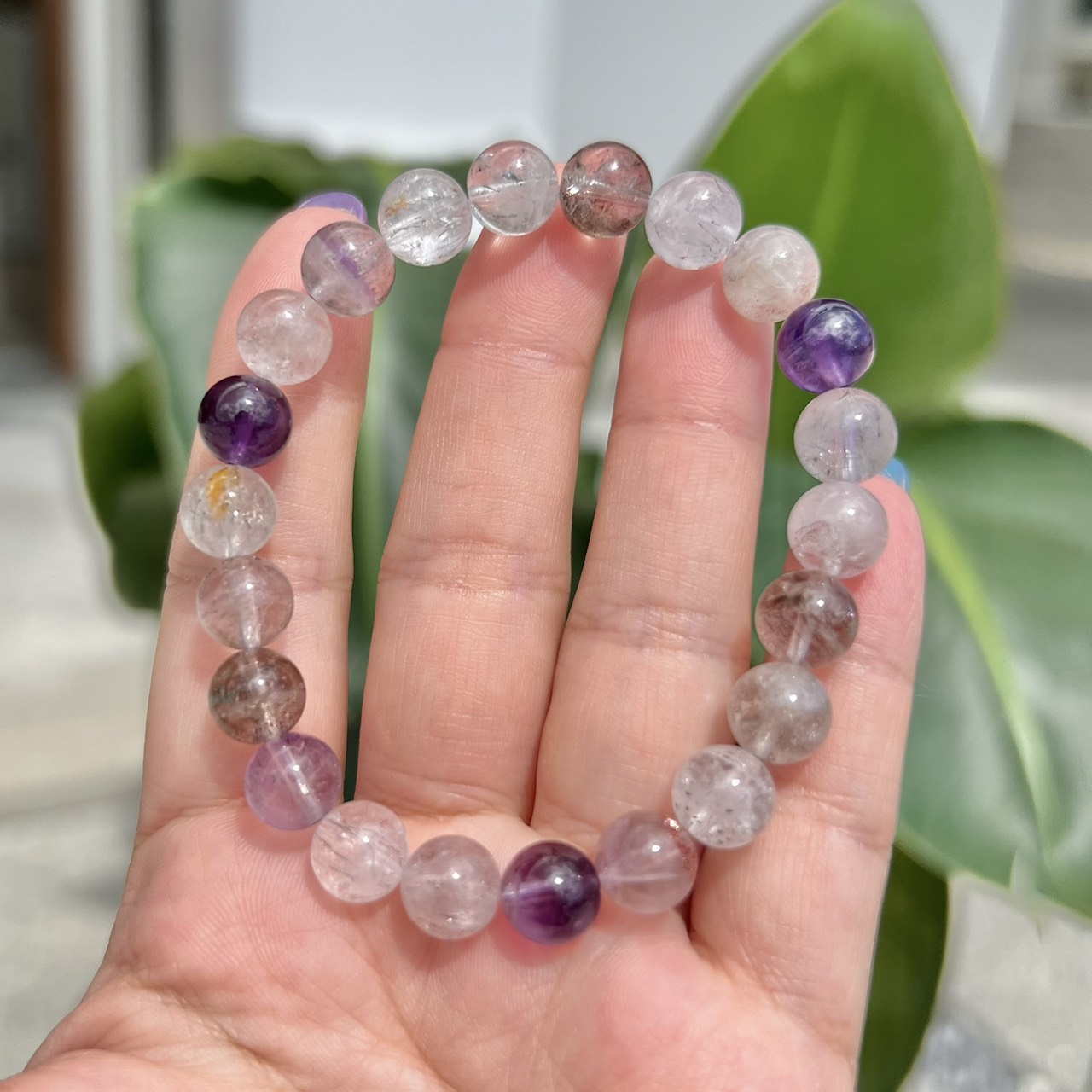 スーパーセブンは、水晶の中にアメジスト・スモーキークォーツ・カコクセナイト・ゲーサイト・ルチル・レピドクロサイトなど、7種の鉱物が共生した非常に希少な天然石です。その複合的なエネルギーにより、「総合運アップ」「覚醒」「浄化」など、あらゆる側面でのサポートが期待できます。