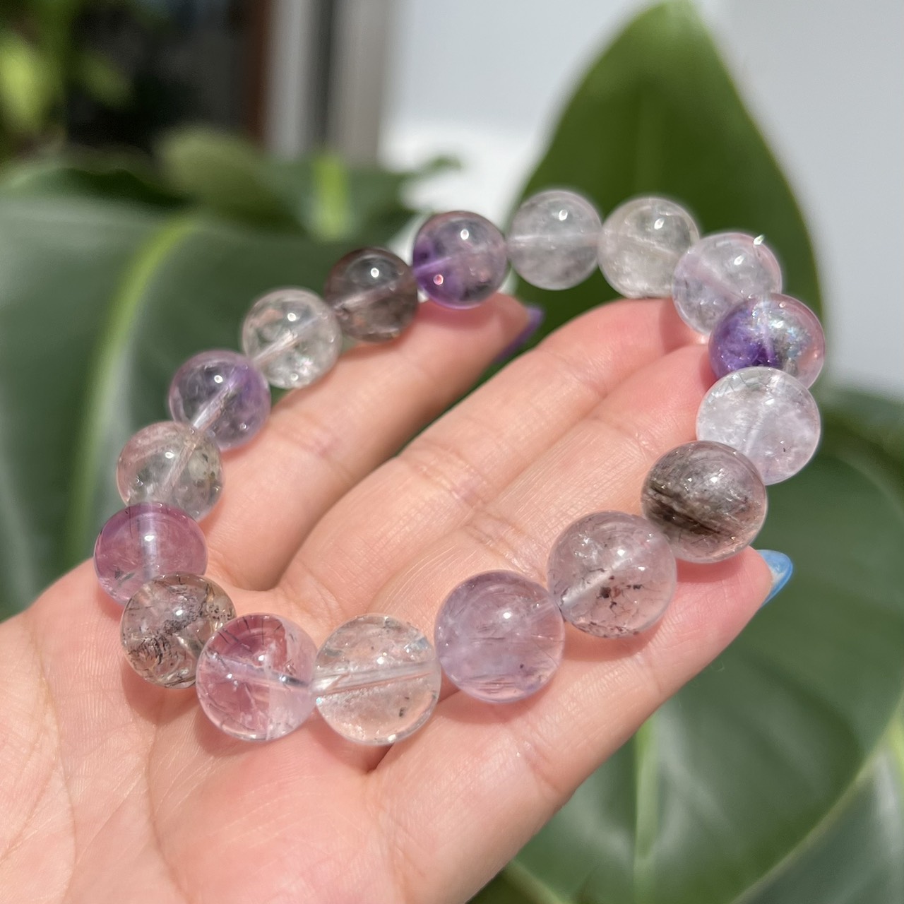 スーパーセブンは、水晶の中にアメジスト・スモーキークォーツ・カコクセナイト・ゲーサイト・ルチル・レピドクロサイトなど、7種の鉱物が共生した非常に希少な天然石です。その複合的なエネルギーにより、「総合運アップ」「覚醒」「浄化」など、あらゆる側面でのサポートが期待できます。