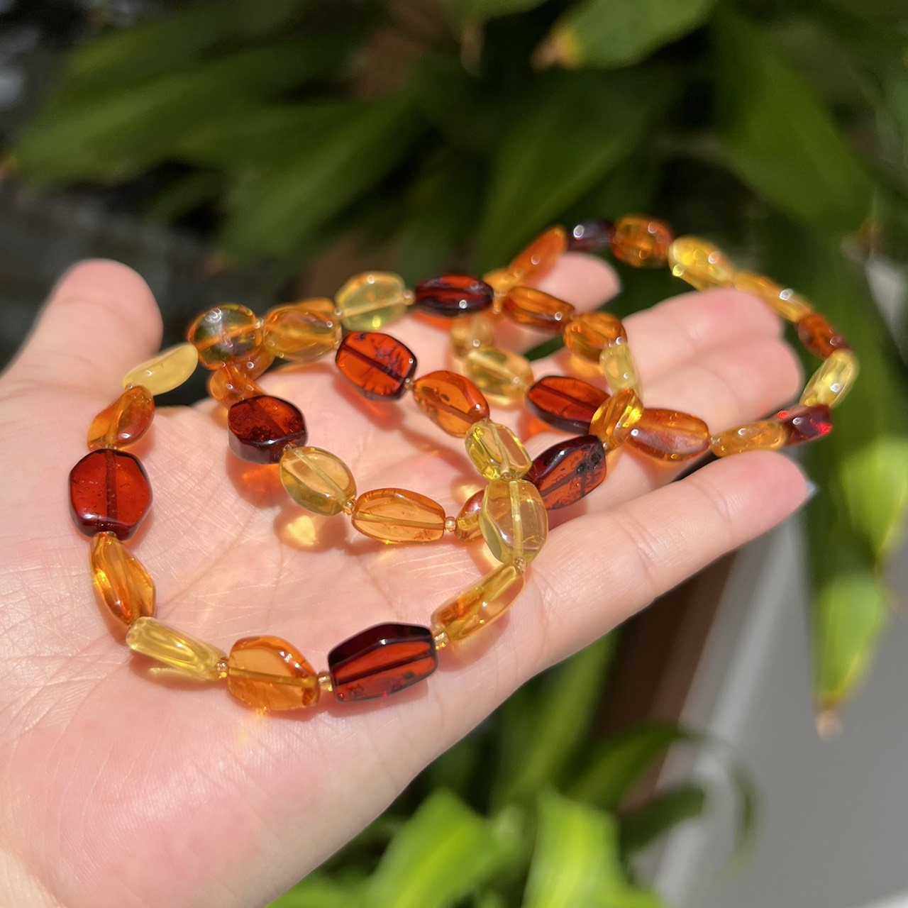 NEW アンバー タンブルカット ブレスレット 約7~10mm(ランダム|天然キズ・へこみ有)