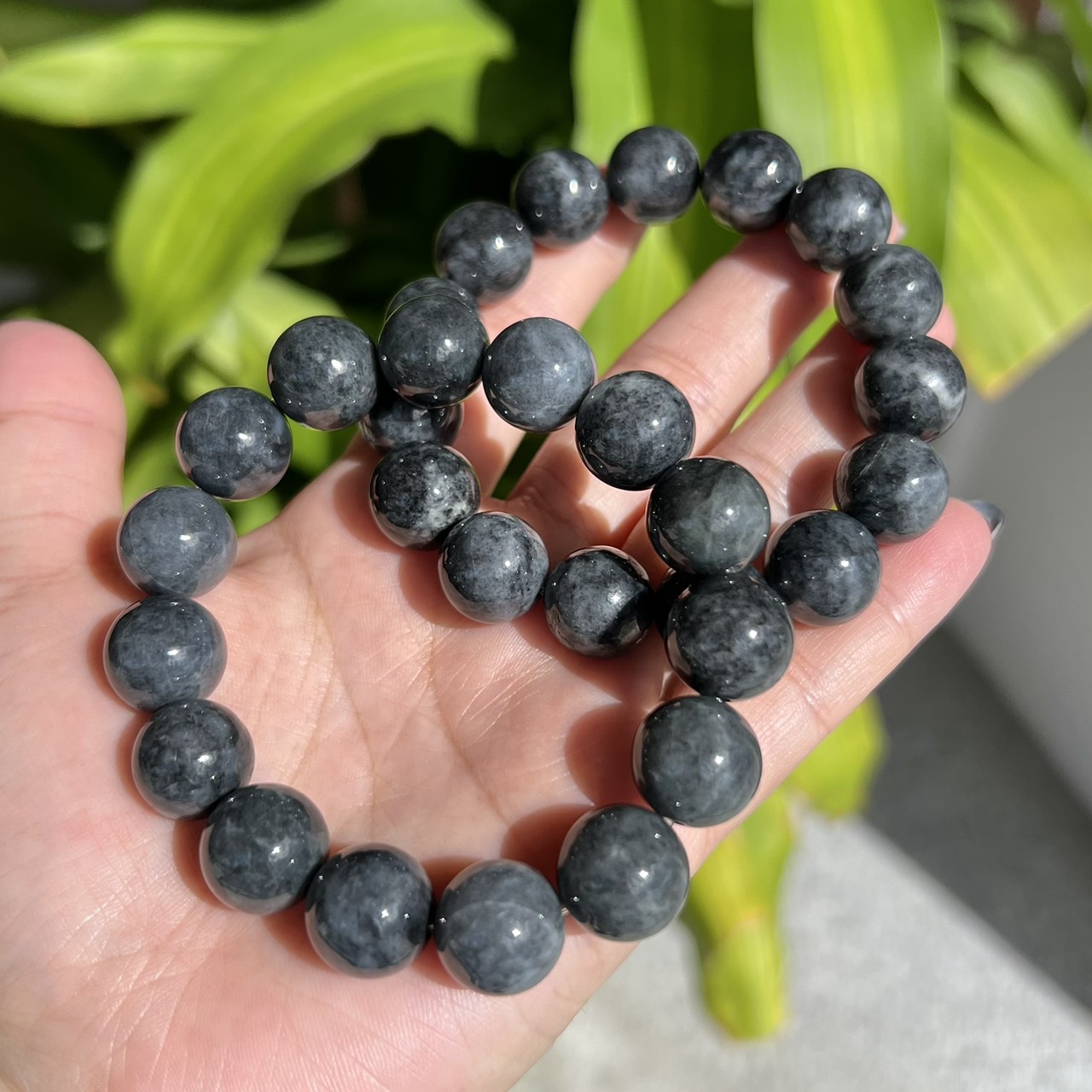 ブラックヒスイブレスレット 約12.8~13.2mm(ランダム)
