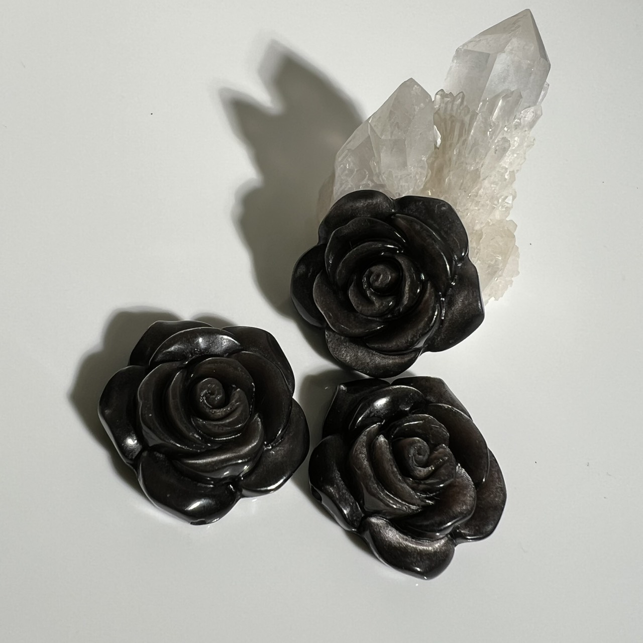 NEW オブシディアン バラ粒 約28.9mm 粒販売(ランダム)