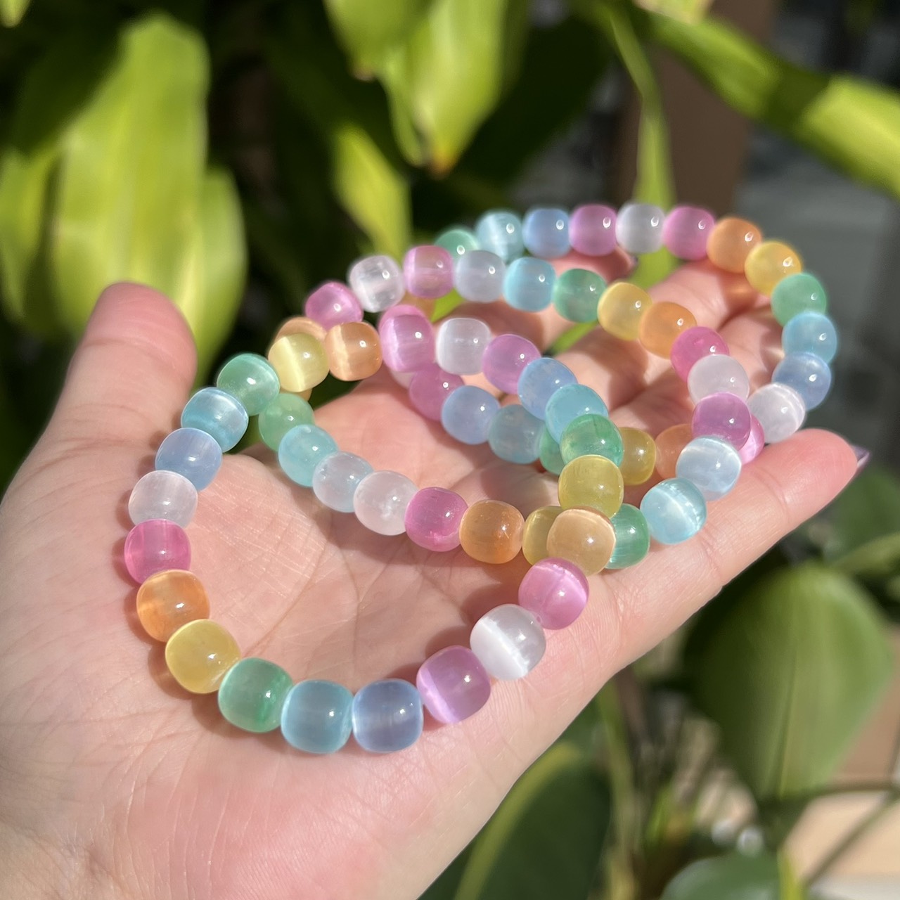 レインボーセレナイトブレスレット 約8mm(ランダム|天然キズ有)