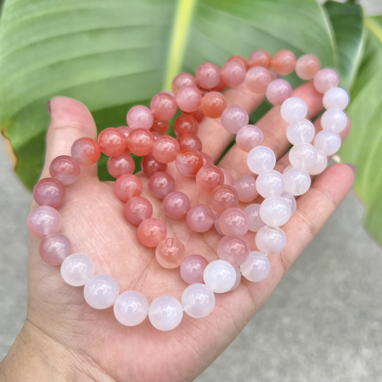 塩源ピーチメノウブレスレット 約9.8~10.2mm (ランダム|天然へこみ有)