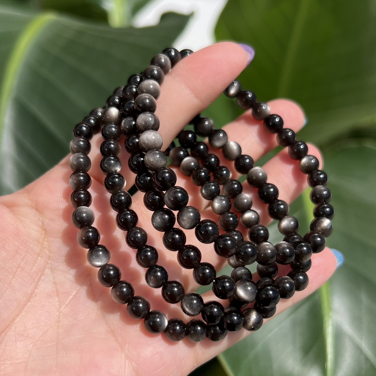 シルバーオブシディアンブレスレット 約5.6~6.3mm(ランダム)