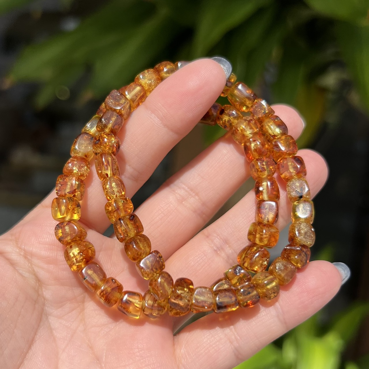 NEW アンバーキューブカット ブレスレット 約5~6mm(ランダム)