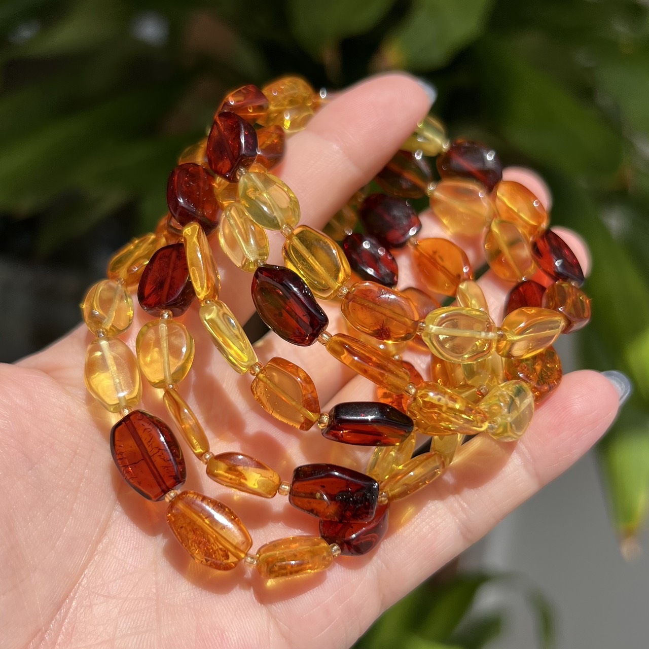 NEW アンバー タンブルカット ブレスレット 約7~10mm(ランダム|天然キズ・へこみ有)