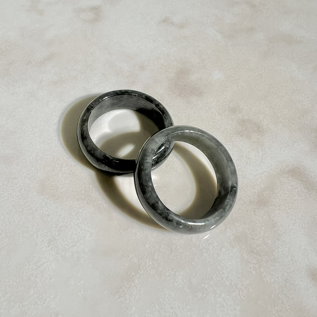 NEW ブラック翡翠(ヒスイ)くり抜きリング 18号(ランダム|キズ有)