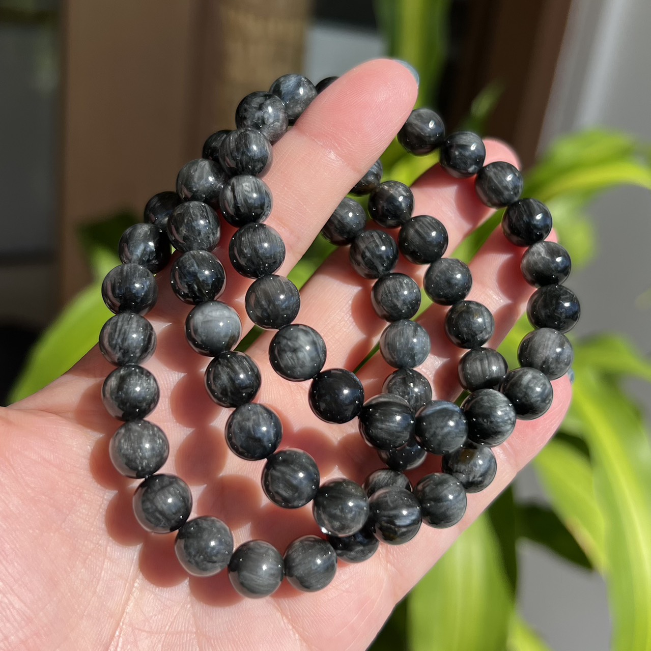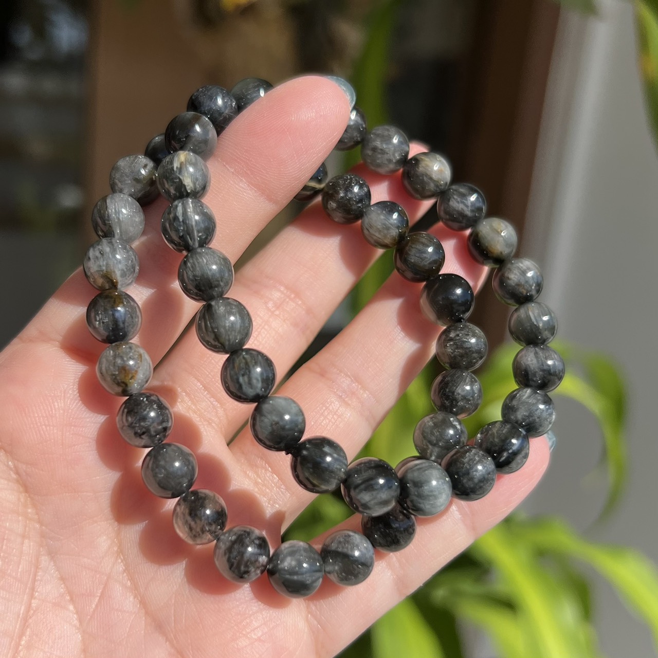 ブラックサゲニティッククォーツブレスレット 約8.8~9.2mm(ランダム)