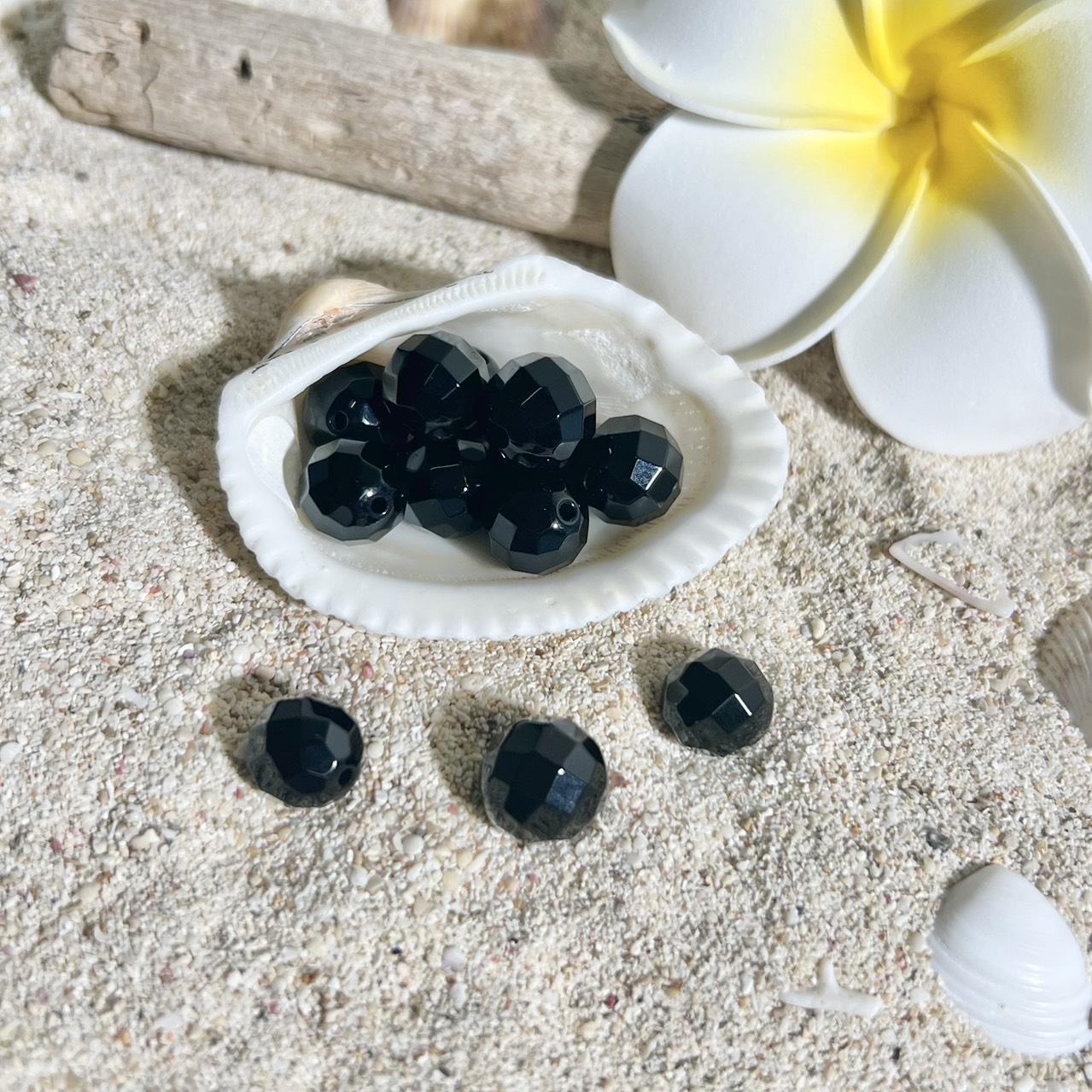 ブラック翡翠(ヒスイ) ミラーカット 約7mm 粒販売(ランダム)