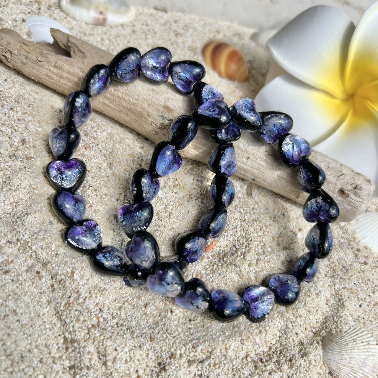 ホタルガラスハートブレスレット015 約11~12mm(ランダム)