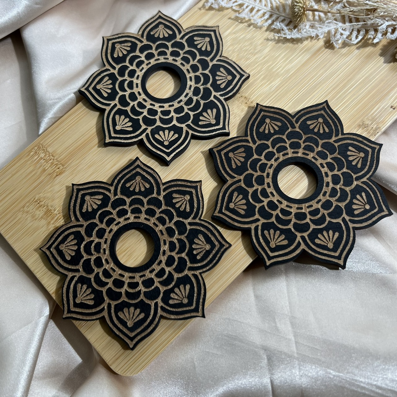曼荼羅(マンダラ)模様 台座 約97mm~4.5mm(ランダム|木製)